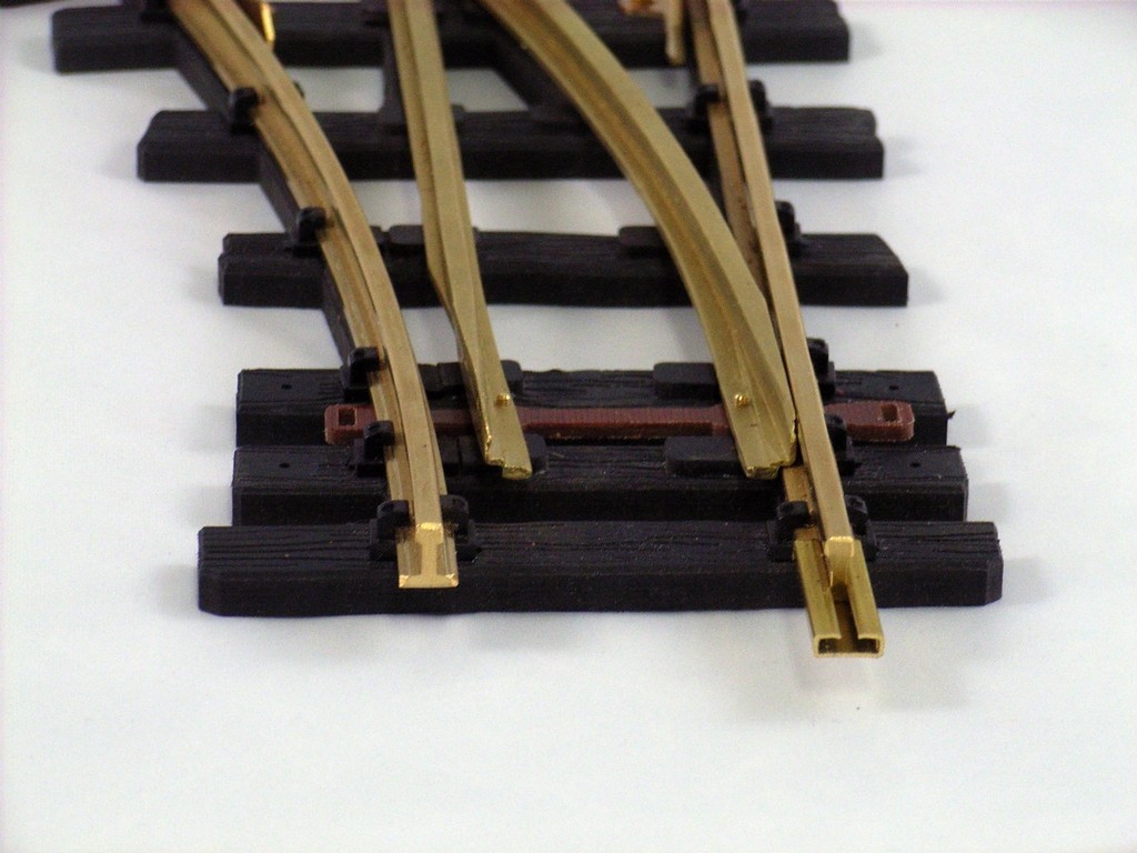 Die Zungen sind vorbildgetreu asymmetrisch, das äußere Gleisprofil ist nicht ausgefräst!