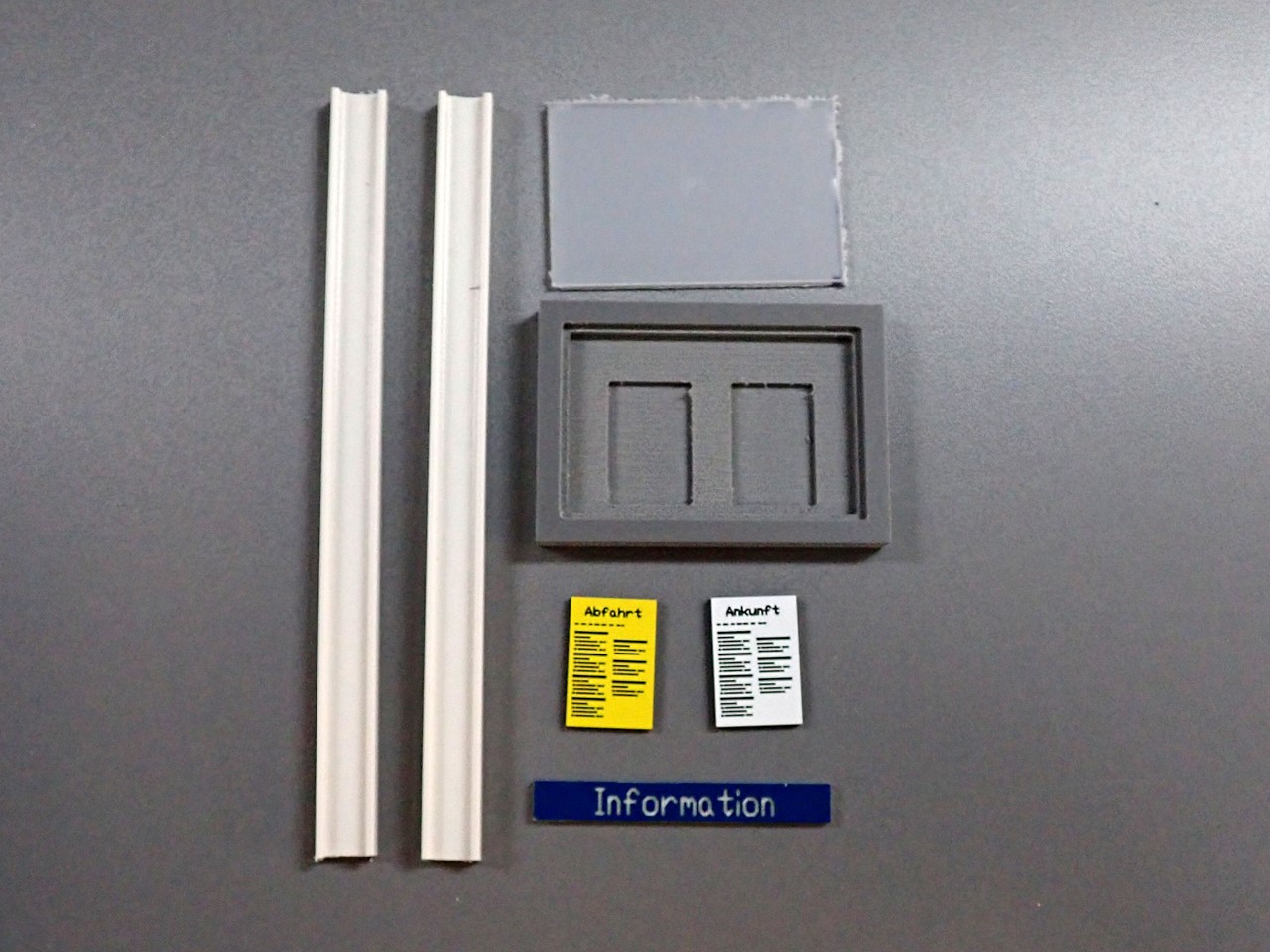 Beigelegt sind die abgebildeten Schilder und zwei H-Profile.