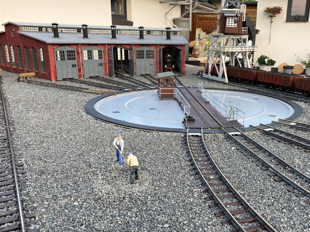 Der Musterlokschuppen ist in einer etwas verkürzten Version aufgebaut worden, indem in der Mitte ein Feld mit zwei Fenstern herausgenommen worden ist.